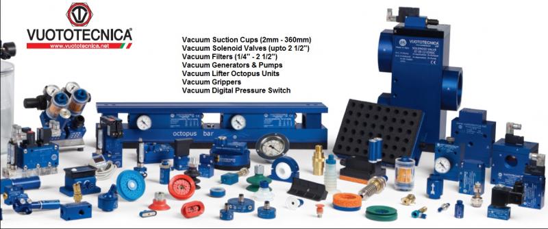 Vacuum CupsVacuum Cups with SupportVacuum SwitchesDirect Operating Vacuum ValvesVacuum Solenoid Valves 3/2way Suction FiltersLong Operation Suction FiltersIntegrated Vacuum Handling SystemsVacuum Cylinders
